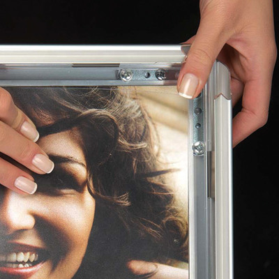 Silbereloxierten Alurahmen mit Ecken auf Gehrung. PS Rückwand in weiß und entspiegelter APET Frontscheibe. Komplett mit Schrauben und Dübeln geliefert.